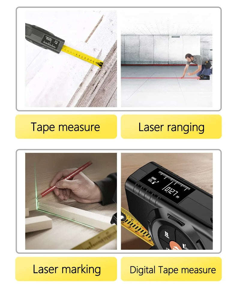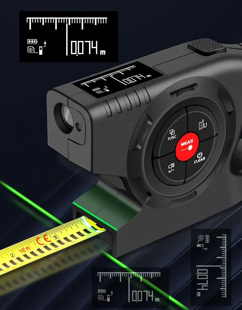 Logra precisión y rapidez en tus mediciones con la cinta métrica láser digital 3 en 1, que combina tecnología avanzada y diseño práctico para una experiencia ideal.