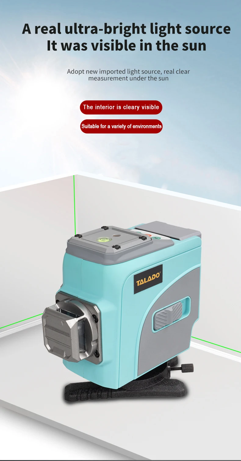 Transforma tus proyectos de construcción, renovación o bricolaje con el Nivel Láser de Autonivelación 4D de 16 Líneas, una herramienta de precisión de vanguardia diseñada para profesionales y entusiastas. Este nivel láser proyecta 16 líneas verdes brillantes (4 planos de 360 grados) que cubren horizontal y verticalmente, garantizando alineaciones perfectas en paredes, suelos, techos y más. Equipado con tecnología de autonivelación avanzada, ajusta automáticamente el láser para mantener la precisión incluso en superficies irregulares, ahorrando tiempo y esfuerzo en la configuración. Con un diseño robusto, batería recargable de litio y controles inteligentes, este nivel láser es ideal para tareas como instalación de azulejos, construcción de tabiques, nivelación de suelos o proyectos de topografía. Su haz verde de alta visibilidad asegura claridad incluso en entornos bien iluminados, mientras que su compatibilidad con trípodes y soportes magnéticos lo hace versátil para cualquier entorno de trabajo.